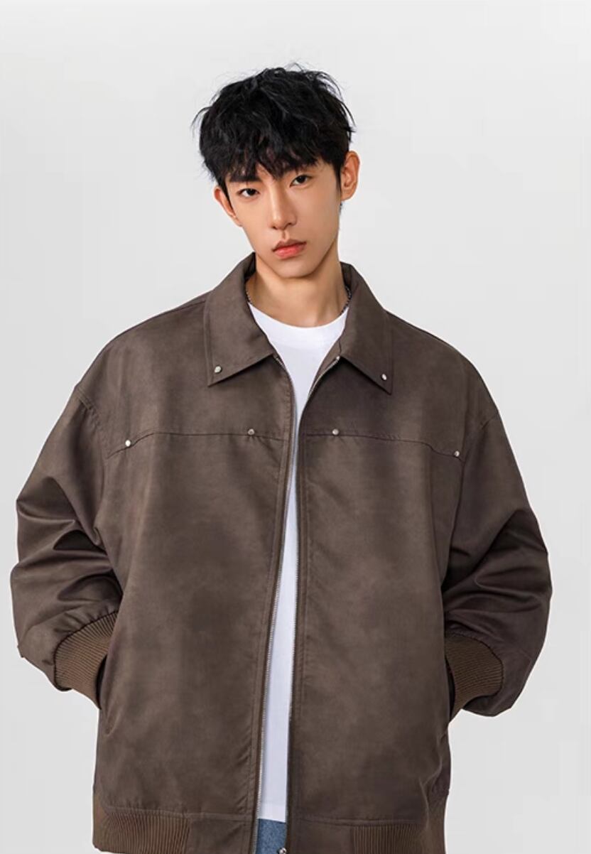 柔らかなスエード調素材が魅力のオーバーサイズジャケット。