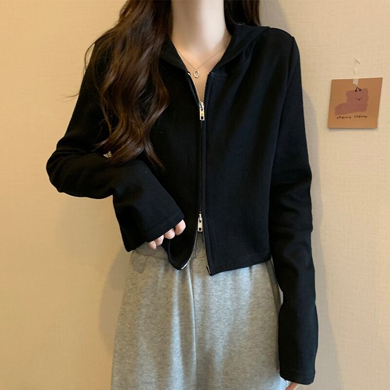 Hooded Parka Women's Cardigan Double Zipper Top