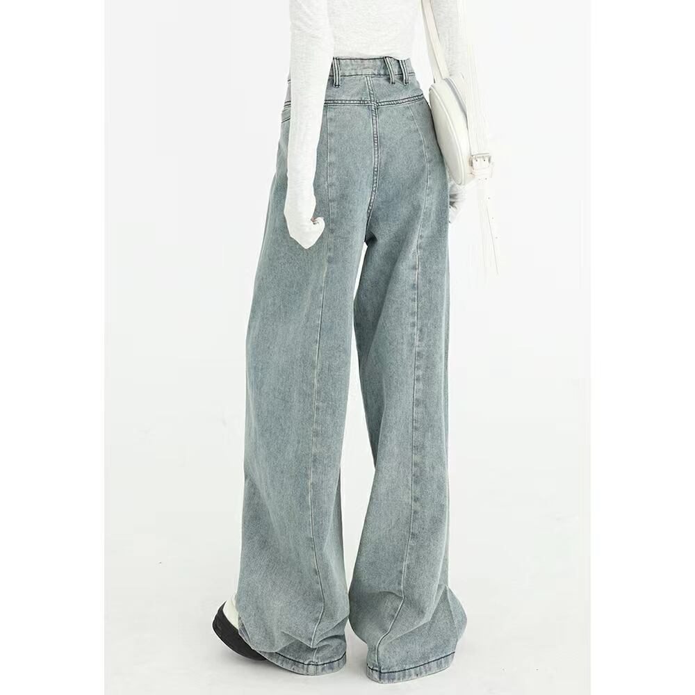 ハイウエストのデザインが美しいワイドレッグデニムパンツ。