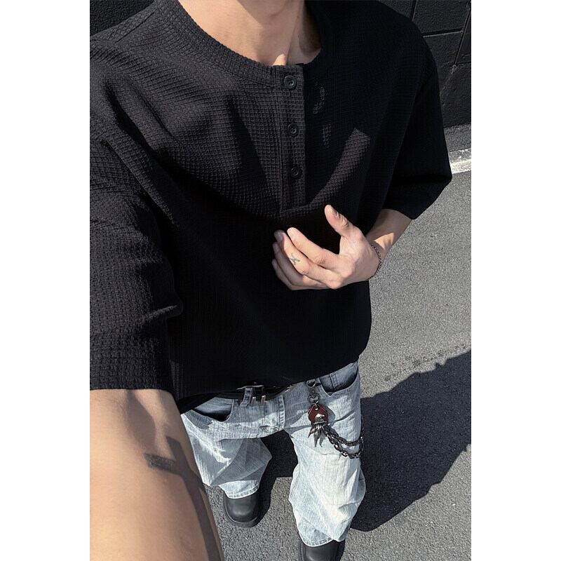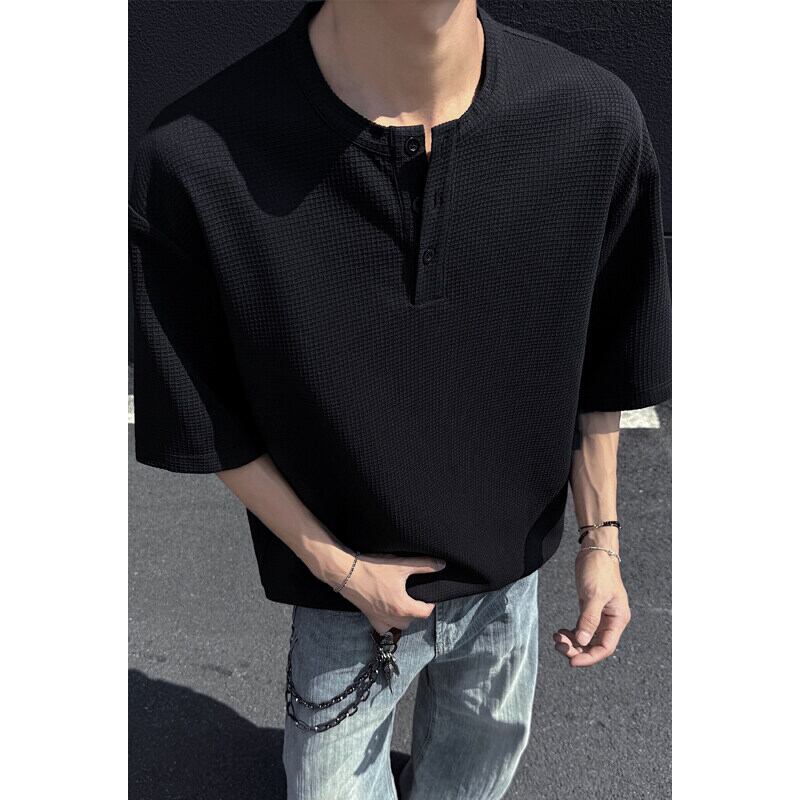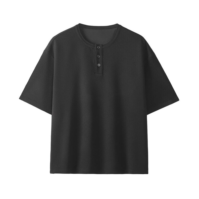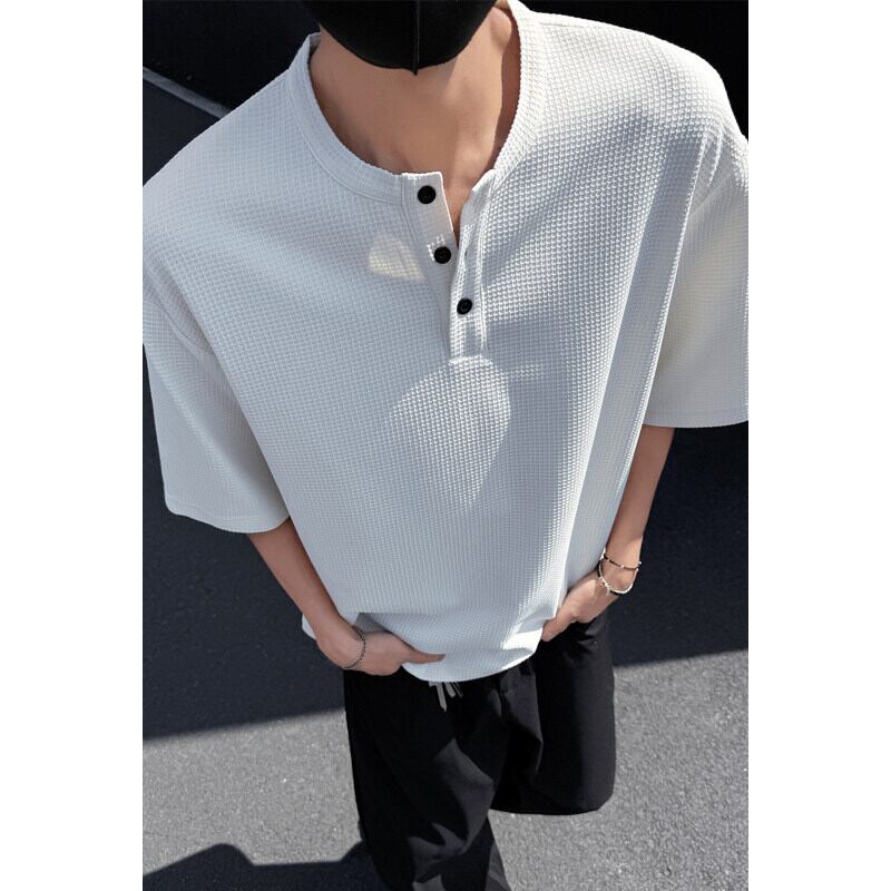 おしゃれなワッフル生地を使用したメンズ向けヘンリーネックTシャツ、Summer large size waffle-breasted T-shirtが新登場しました!